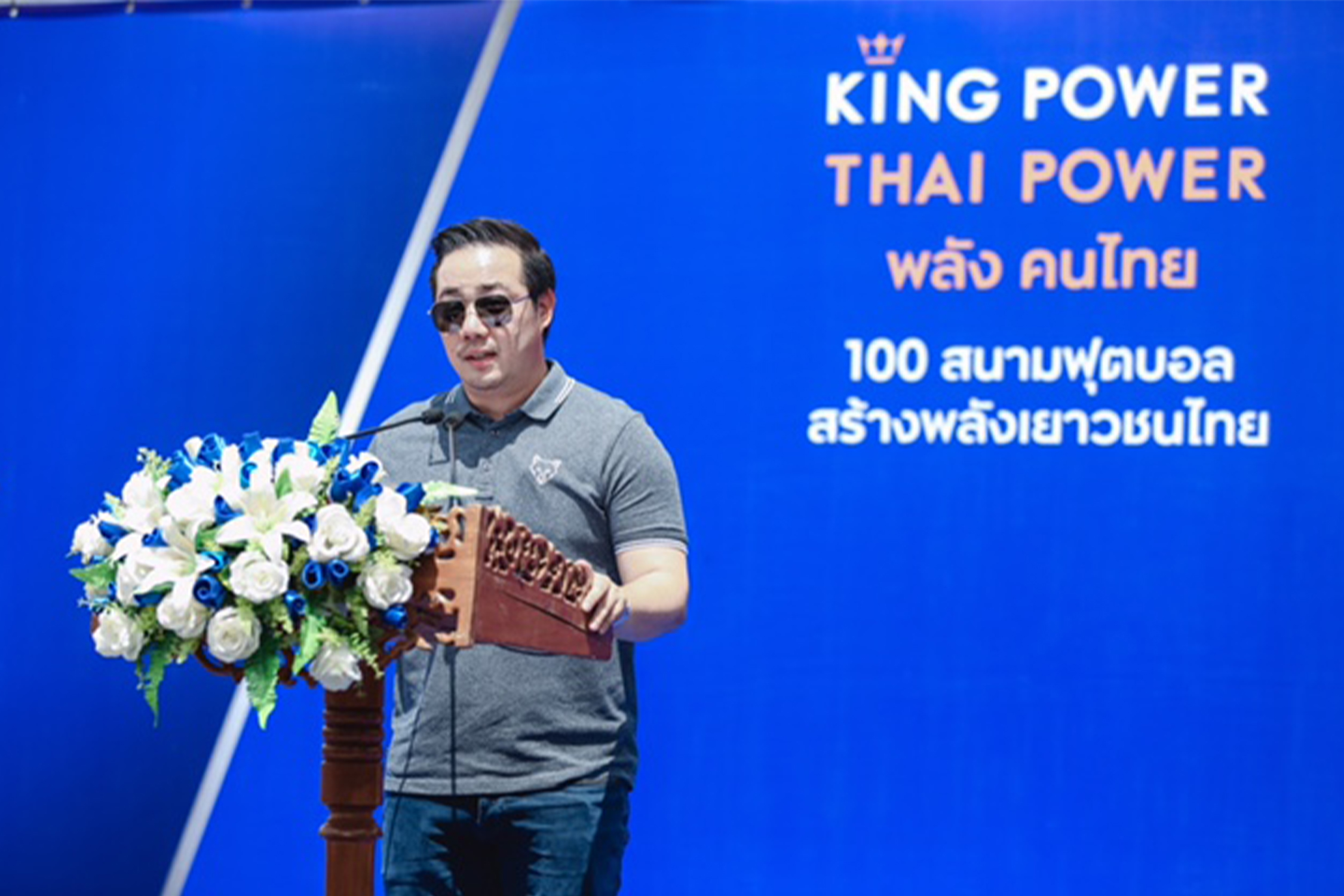 นายอัยยวัฒน์ ศรีวัฒนประภา ประธานเจ้าหน้าที่บริหาร กลุ่มบริษัท คิง เพาเวอร์ กล่าวว่า “กลุ่มบริษัท คิง เพาเวอร์ มีเจตนารมณ์และมีความมุ่งมั่นที่ส่งเสริมเยาวชนไทยทางด้านกีฬาอย่างเต็มที่ เพราะเชื่อว่าเด็กไทยที่มีใจรักกีฬาฟุตบอลนั้นมีจำนวนมาก โดยเพิ่มโอกาสในการพัฒนาทักษะด้านกีฬาฟุตบอลด้วยการส่งมอบสนามฟุตบอลหญ้าเทียมระดับมาตรฐานสากลของโครงการ 100 สนามฟุตบอล สร้างพลังเยาวชนไทย ให้เป็นพื้นที่ในการออกกำลังกาย และเป็นสถานที่ฝึกซ้อม เพื่อช่วยพัฒนาฝีเท้าแบบนักกีฬาอาชีพ และกลายเป็นศูนย์รวมการแข่งขันฟุตบอลในอนาคต ที่ก่อให้เกิดประโยชน์สูงสุดต่อนักกีฬาฟุตบอลทุกคนในพื้นที่ เพื่อต่อยอดสู่การเป็นนักกีฬาอาชีพ และก้าวไกลสู่ระดับสากลต่อไปอย่างยั่งยืน ซึ่งปัจจุบันกลุ่มบริษัทฯ ได้เดินหน้าลงพื้นที่ดำเนินการก่อสร้างและมอบสนามฟุตบอลหญ้าเทียมมาตรฐานสากลไปแล้ว 77 สนามทั่วประเทศ แบ่งเป็น