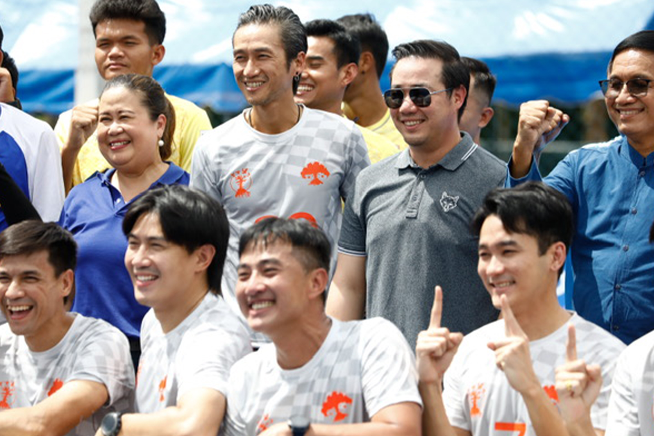 ‘ตูน’ อาทิวราห์ คงมาลัย พร้อมด้วยทีมก้าวคนละก้าว คณะสื่อมวลชน และทีมนักฟุตบอลเยาวชนจากโรงเรียนท่าข้ามวิทยาคม จังหวัดแพร่ ที่จะมาดวลแข้ง สร้างความสุขและรอยยิ้มกันอย่างสนุกสนานให้กับเยาวชนไทยในพื้นที่