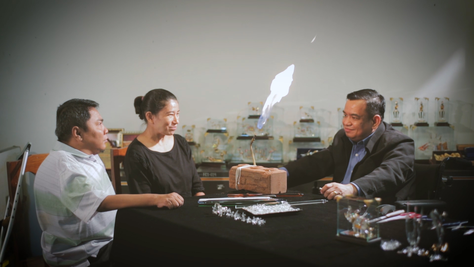 “งานเป่าแก้วมันก็เหมือนกับการใช้ชีวิต…เราต้องค่อยๆ เลี้ยงไฟที่ใช้เป่าแก้ว ให้ความร้อนกระจายไปทั่ว พอแก้วเริ่มหลอมเราถึงจะค่อยยืดมันและค่อยหดมัน ถ้าเกิดเราปล่อยให้ไฟมันมากเกินไปแก้วจะเริ่มละลาย เราไม่สามารถจะรวมตัวให้มันเป็นรูปร่างที่เราต้องการได้”
