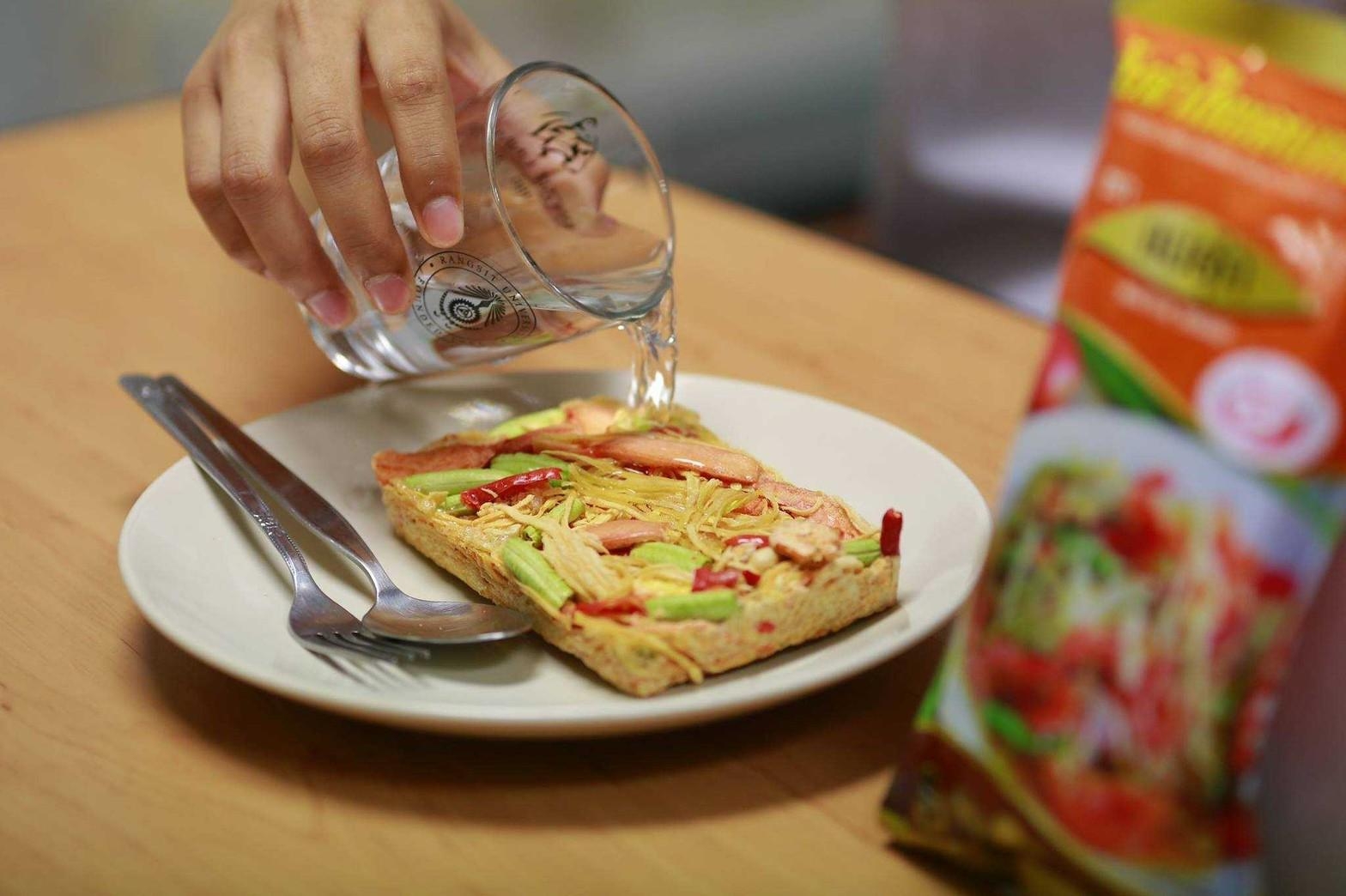 เพราะส้มตำซึ่งเป็นหนึ่งในอาหารสร้างชื่อและเป็นเอกลักษณ์ของไทยจึงเป็นตัวเต็งในการผลิตครั้งนี้ แม้จะมีอาหารไทยอื่นๆ ที่น่าสนใจ แต่ส้มตำก็เป็นอาหารที่แม้จะมีความสลับซับซ้อน แต่ก็มีข้อได้เปรียบมากกว่าอาหารอย่างต้มยำ หรืออาหารประเภทอื่น “พวกต้มยำกุ้ง มัสมั่น หรือผัดไทย จะต้องใช้ความร้อนในการทำให้อาหารสุกจึงจะรับประทานได้ แต่ส้มตำเราสามารถรับประทานได้ปกติ เทน้ำเปล่าลงไป คลุกแล้วรับประทานได้เลย”