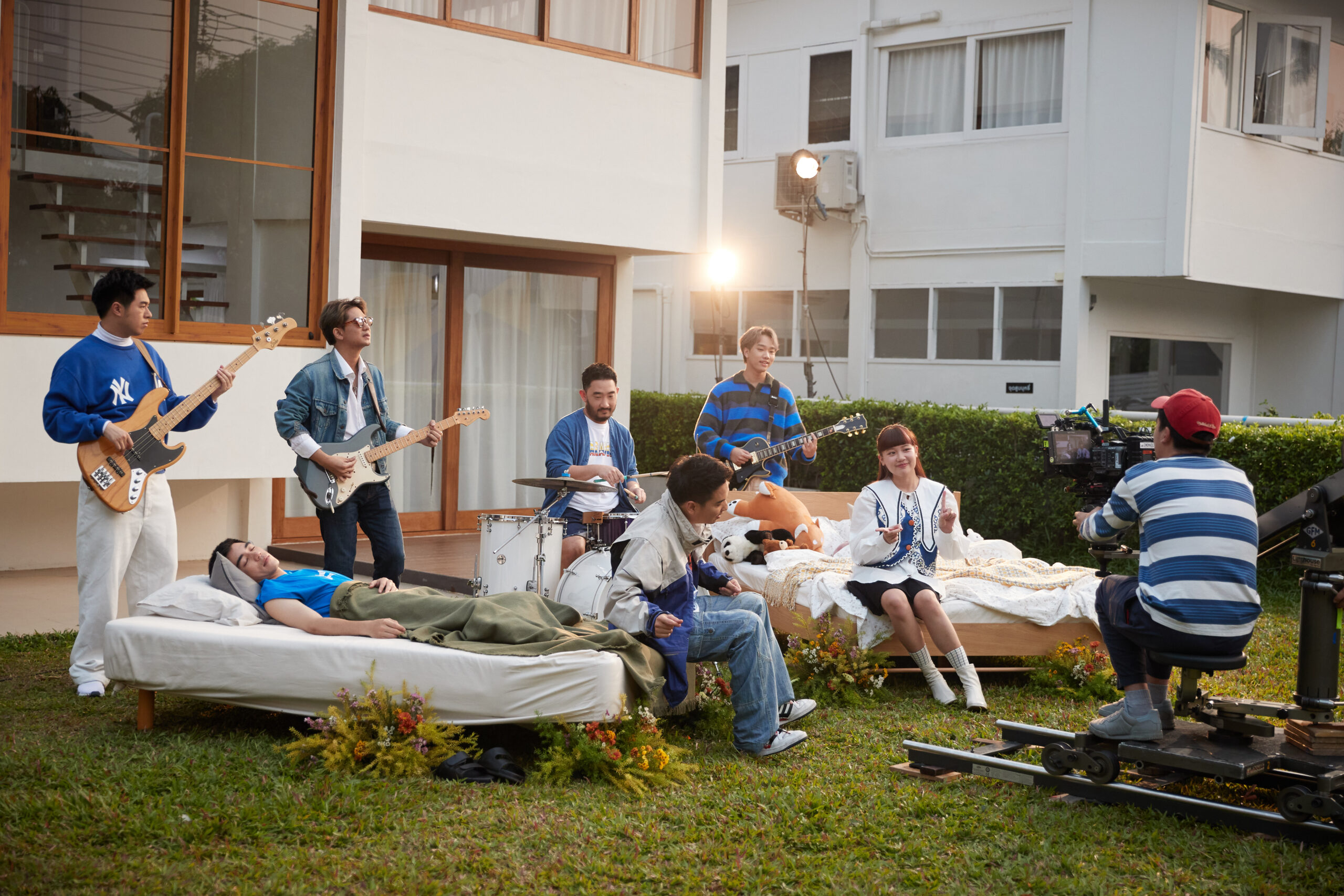 ในส่วนของการถ่ายทำ งานจะถูกแบ่งออกเป็นสองช่วง ช่วงแรกถ่ายทำเนื้อเรื่องกันก่อน ช่วงที่สองเราก็จะเก็บเป็นไลน์ซิงค์ส่วนวงที่ร้องเพลง ซึ่งในตอนที่ถ่ายทำกันนะครับ ก็จะมีการจัดกล้องจัดแสงตามภาพ ตามไอเดียที่เราวางไว้ แล้วเราก็จะพยายามถ่ายกันให้ได้มากที่สุด ให้ได้ออกมาดีที่สุด แล้วนำไปตัดต่อ ซึ่งบรรยากาศในกองสนุกมาก คือนักแสดงแต่ละคนเล่นแบบเต็มที่สุดๆ ได้มาเจอพี่ๆ ทั้ง Serious Bacon และ Tattoo Colour ด้วย สนุกสนานมากครับ