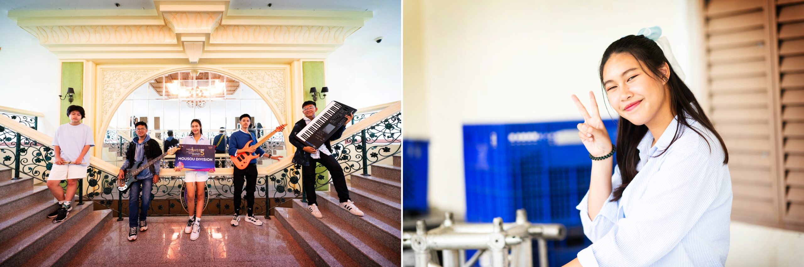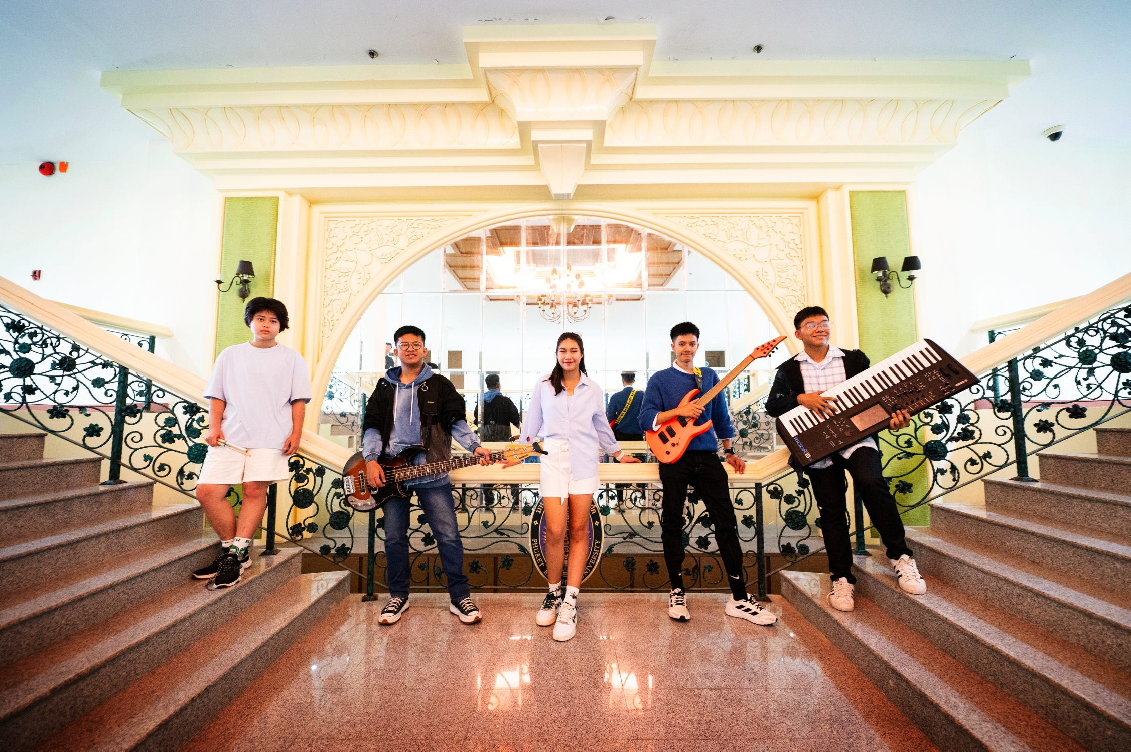 กอล์ฟ: ส่วนตัวผมจะร้องเดี่ยวมากกว่า ไม่ได้อยู่ประจำวงไหนเป็นหลัก การร้องเพลงถือเป็นงานอดิเรกของผม นั่นโลกใบที่หนึ่ง ส่วนโลกอีกใบของผม คือผมเป็นคนเดียวในวงที่เรียนสาขาวิชาเทคโนโลยีสถาปัตยกรรม คณะวิทยาศาสตร์และเทคโนโลยี ไม่ได้เรียนมาทางด้านดนตรีโดยตรงแบบเพื่อนๆ เขา เพราะผมรู้สึกว่าการร้องเพลงอิสระ เราสามารถเรียนรู้เพิ่มเติมได้ตลอดเวลา อย่างตอนที่เพื่อนๆ ชวนมาเป็นนักร้องของวง ผมก็ดีใจนะที่เพื่อนๆ นึกถึงเราทั้งๆ ที่เราไม่ได้เรียนมาด้านนี้ แถมตรงไหนที่ร้องไม่ได้ ร้องแล้วติด ก็มีเพื่อนๆ คอยซัปพอร์ต ช่วยสอน ช่วยบอกเทคนิค อุ่นใจมากครับ