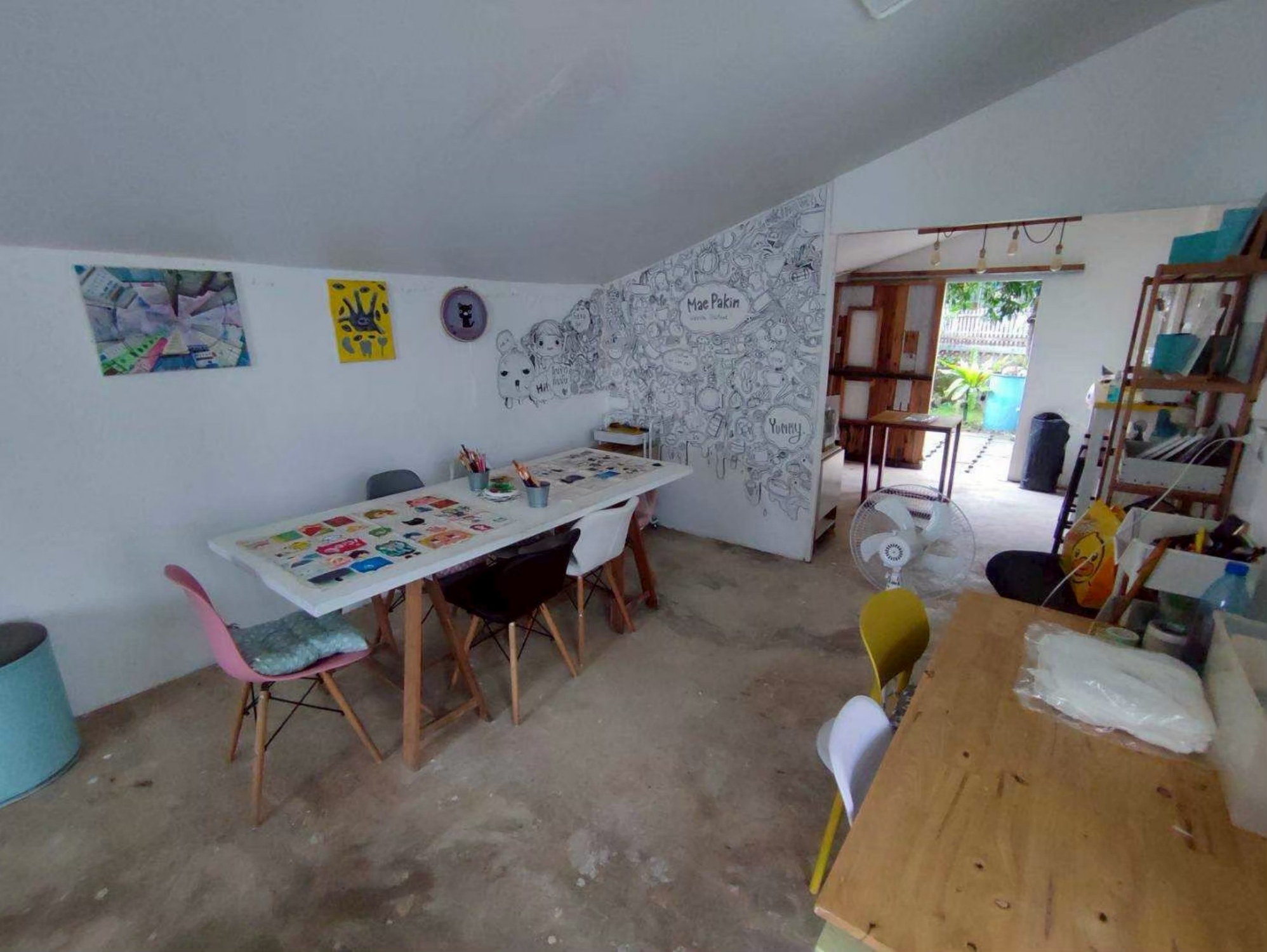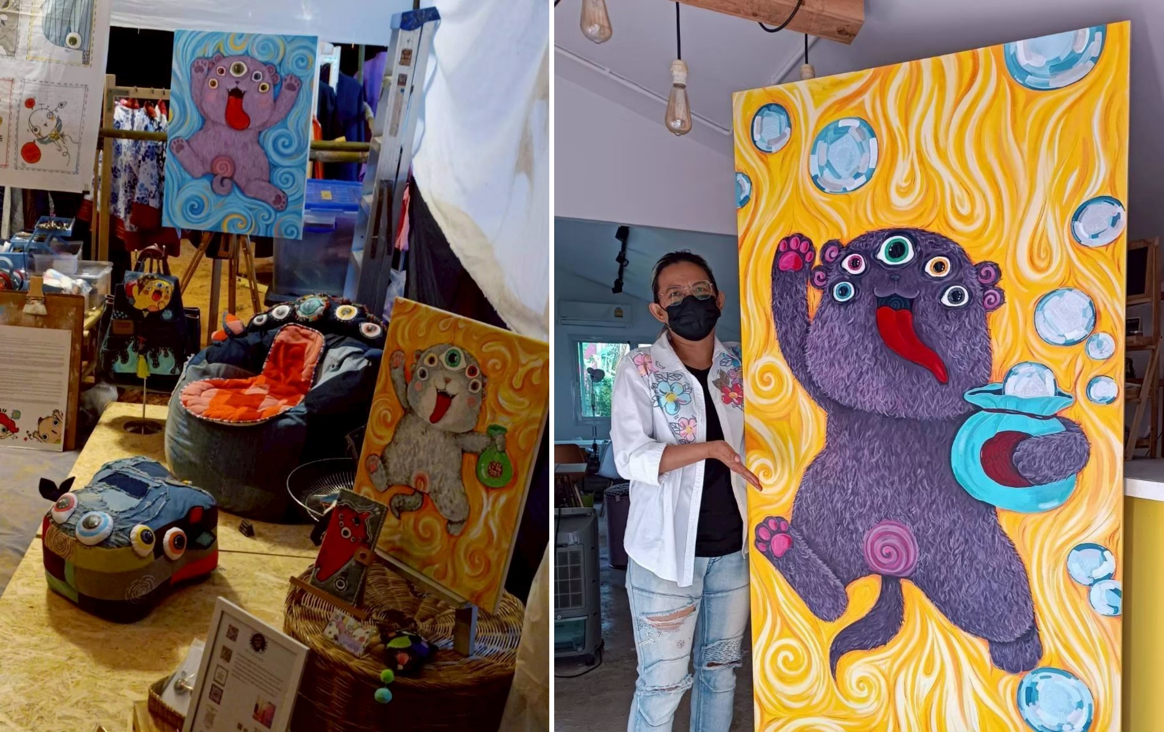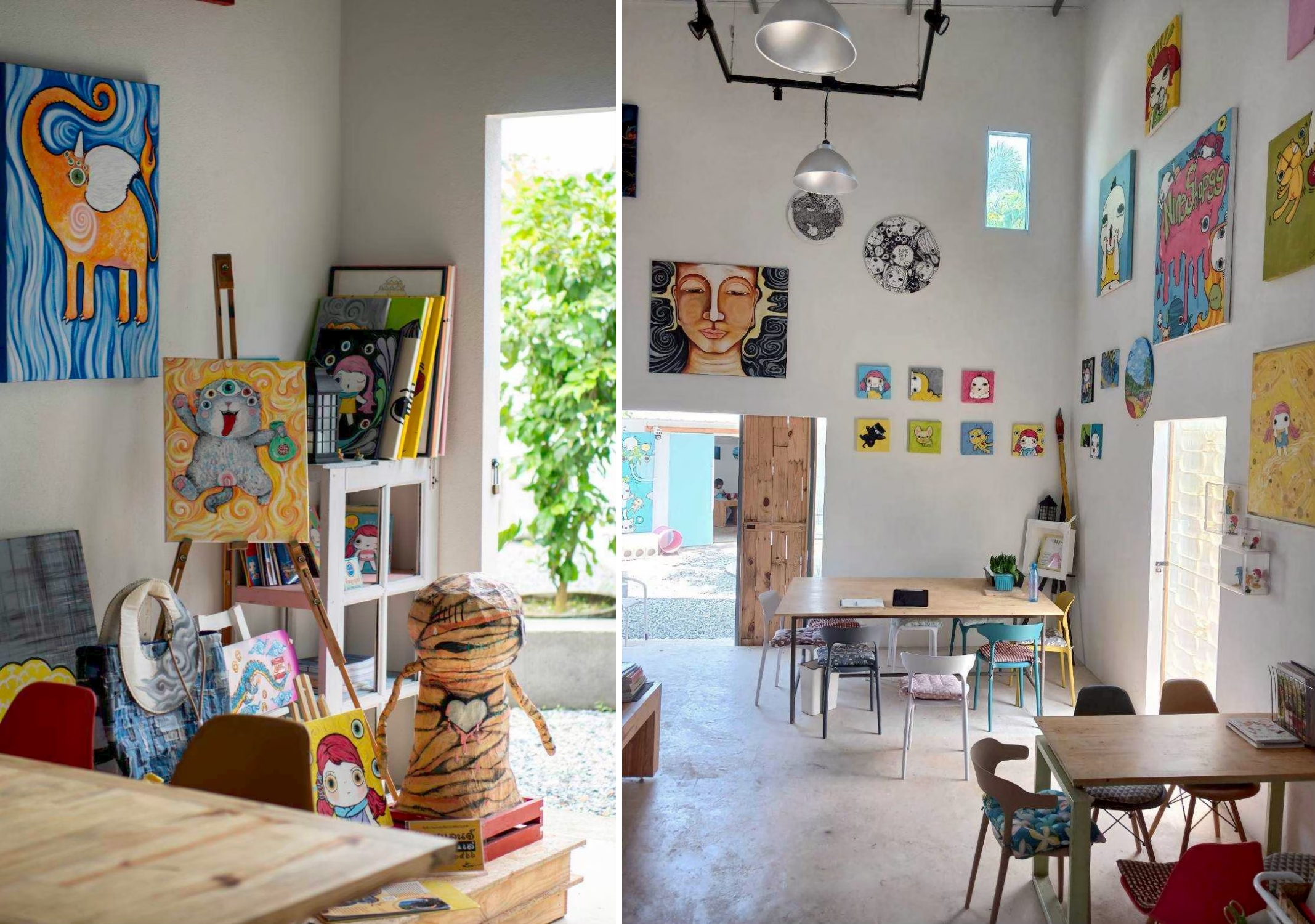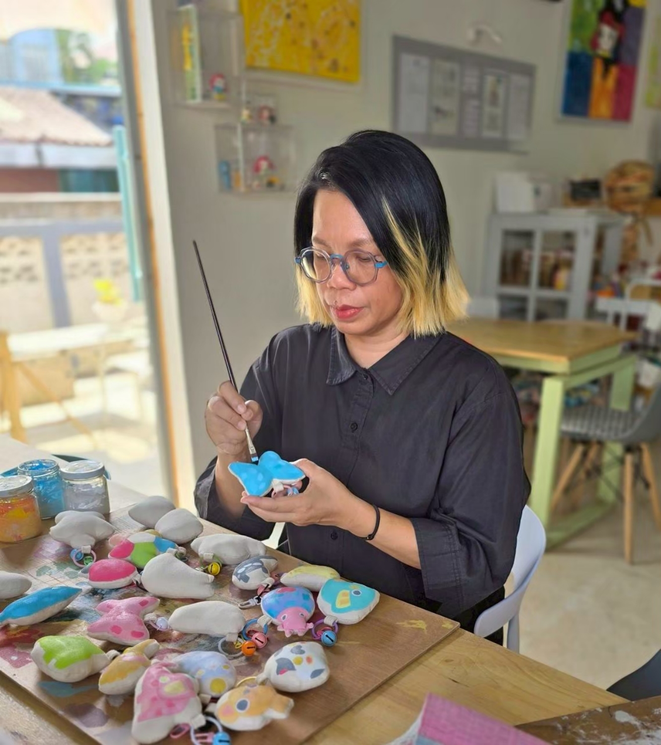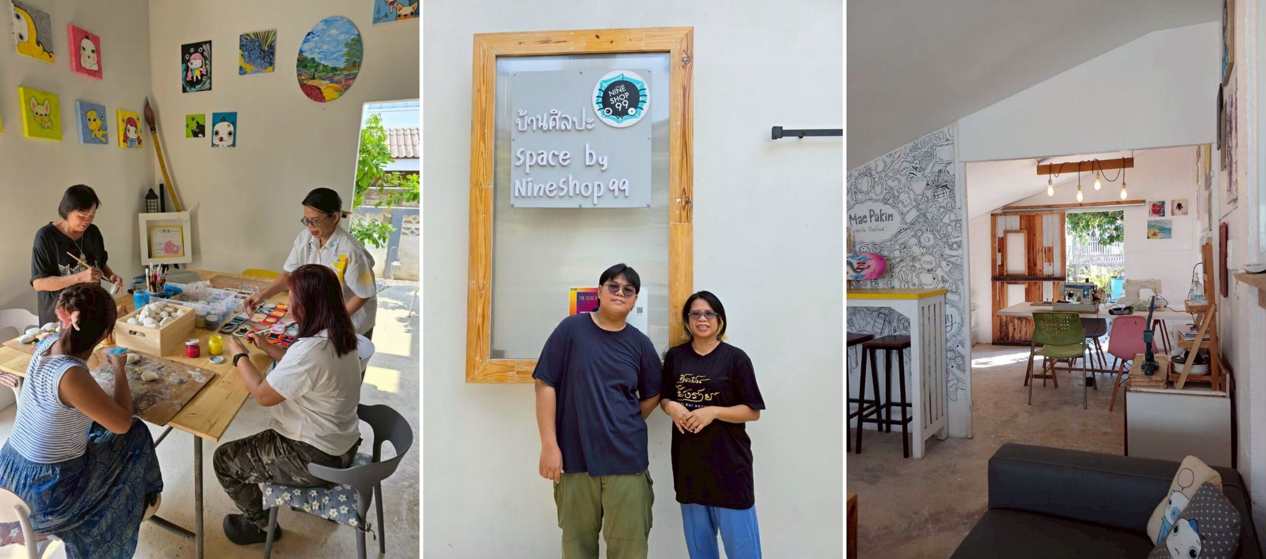 งานศิลปะของคุณแหม่มส่งต่อแรงบันดาลใจให้กับคนรุ่นใหม่ และคนที่อาจไม่รู้ว่าชีวิตมีทางเลือกอื่นอีกเยอะ คุณแหม่มเป็นเครือข่ายศิลปินจังหวัดเชียงราย เธอทำบ้านศิลปะเป็นสตูดิโอและคาเฟ่ (Space by NineShop99 Studio & Café) เปิดให้ผู้ที่สนใจมาศึกษา เรียนรู้การทำงานศิลปะ ตลอดจนสร้างงานให้คนในชุมชนอีกด้วย ชาวบ้านจะมารับงานไปทำที่บ้าน ส่วนใหญ่จะเป็นงานเย็บ และตกแต่งรายละเอียด ซึ่งคุณแหม่มออกแบบเองทั้งหมด แล้วเอากลับมาลงสีรองพื้นที่สตูดิโอ ส่วนตัวการ์ตูนหลักจะมีคุณแหม่มและลูกชายวาดกันสองคน