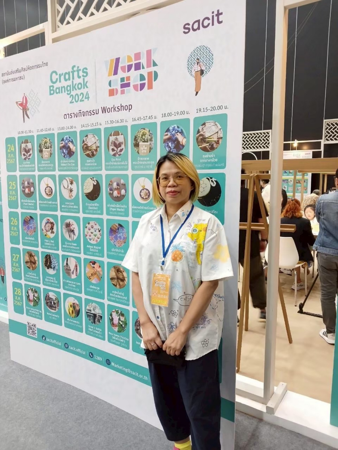 “งานศิลปะมีมูลค่า แต่มักถูกจำกัดไว้บนผนัง เราอยากให้สินค้าของเราเป็นงานศิลปะที่ทรงคุณค่า จับต้องได้ ใช้ได้จริงในชีวิตประจำวัน” คือความหมายของ The art you can touch แนวคิดของแบรนด์ NineShop99 ที่คุณแหม่ม – จุฑามณี อาจกล้า พลังคนไทยผู้มุ่งมั่นบนเส้นทางนี้มาเกือบ 2 ทศวรรษ ไม่ใช่เพราะอยากขาย แต่เพราะรักในสิ่งที่ทำซึ่งสะท้อนความจริงใจผ่านเส้นสายบนชิ้นงานทุกชิ้น โดยเฉพาะอย่างยิ่งมุมมองรักษ์โลกของแบรนด์ ที่ไม่ยอม “ทิ้ง” สิ่งของเหลือใช้ อย่างเศษวัสดุเศษผ้า แม้กระทั่งน้ำล้างสีพู่กันยังนำกลับมาทำประโยชน์…