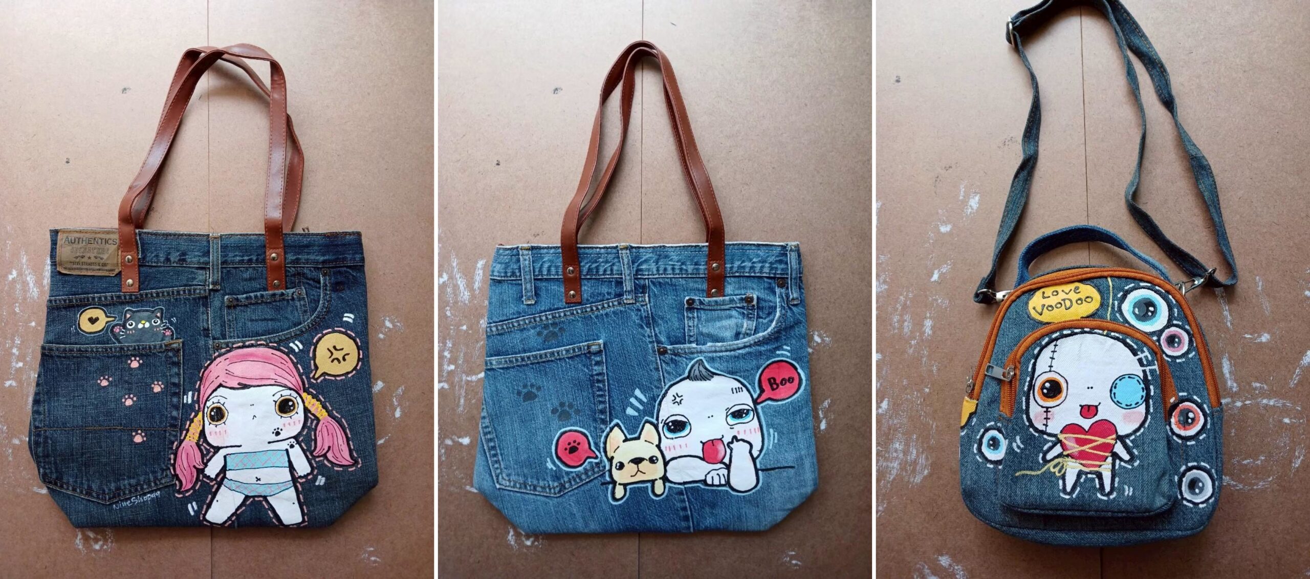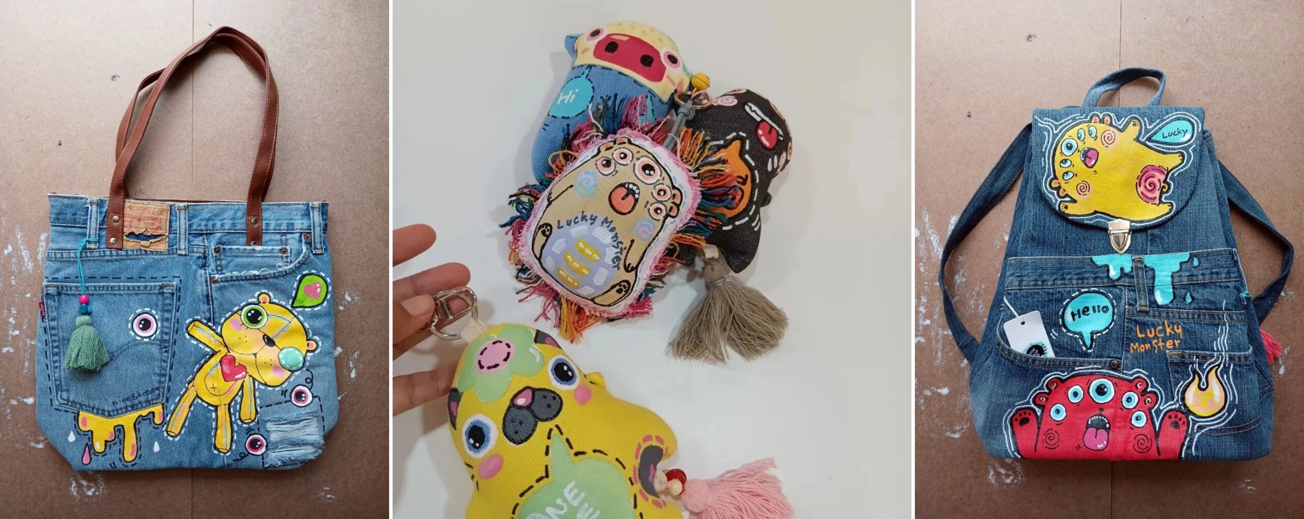 คุณแหม่มเริ่มต้นด้วยแนวคิดรักษ์โลกตั้งแต่วันแรกที่เปิดร้าน ด้วยความตั้งใจที่ไม่อยากสร้างมลพิษและหลีกเลี่ยงการเพิ่มขยะ เธอนำกางเกงยีนมือสองมาตัดเย็บและแปรรูปใหม่เป็นสินค้า เศษผ้าที่เหลือยิ่งเล็กลงเท่าไร จะแปรรูปเป็นของใช้ในขนาดเล็กเท่านั้น เช่น ต่างหู เป็นต้น