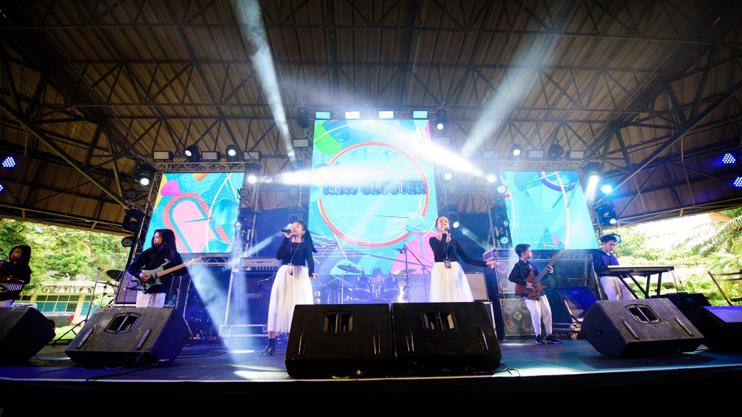 เดิมทีน้องๆ เป็นกลุ่มเพื่อนๆ ที่เคยอยู่โรงเรียนเดียวกันมาก่อน วันหนึ่งคุณแม่กวางก็ชวนให้น้องๆ กลับมาทำวงด้วยกันอีกตอนช่วงโควิด จัดเวลา จัดห้องซ้อม และได้ ครูบุ๊ค – พงศกร เลิศศักดิ์วรกุล มาช่วยดูแลวงให้ และนี่คือจุดเริ่มต้นของ New Cluster จิ๋วแต่แจ๋วแหววในวันนี้