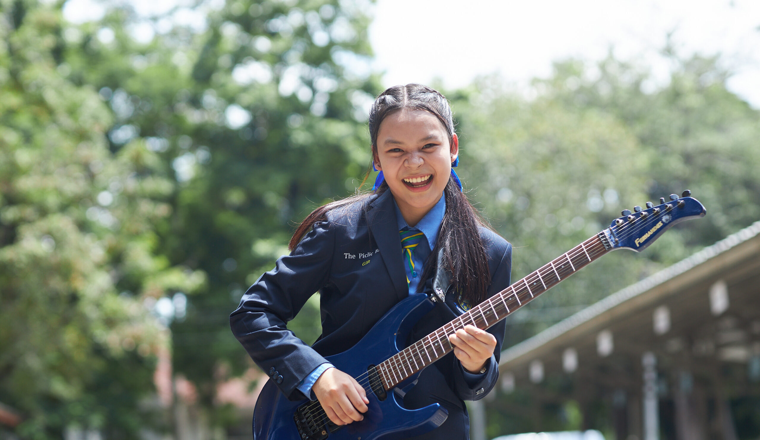 “คือที่โรงเรียนจะมีคาบเรียนอิเล็กโทนกับครูแตน (ฐิติพงศ์ วงศ์ชัย) อยู่แล้วค่ะ แล้วหนูก็อยากเรียนเพิ่ม หนูก็เลยไปขอครูสอนเพิ่ม แต่พอเล่นๆ ไปหนูรู้สึกว่าอิเล็กโทนยังไม่ใช่สิ่งที่ชอบ ครูแตนเลยแนะนำให้ลองเล่น อูคูเลเล่ค่ะ”
