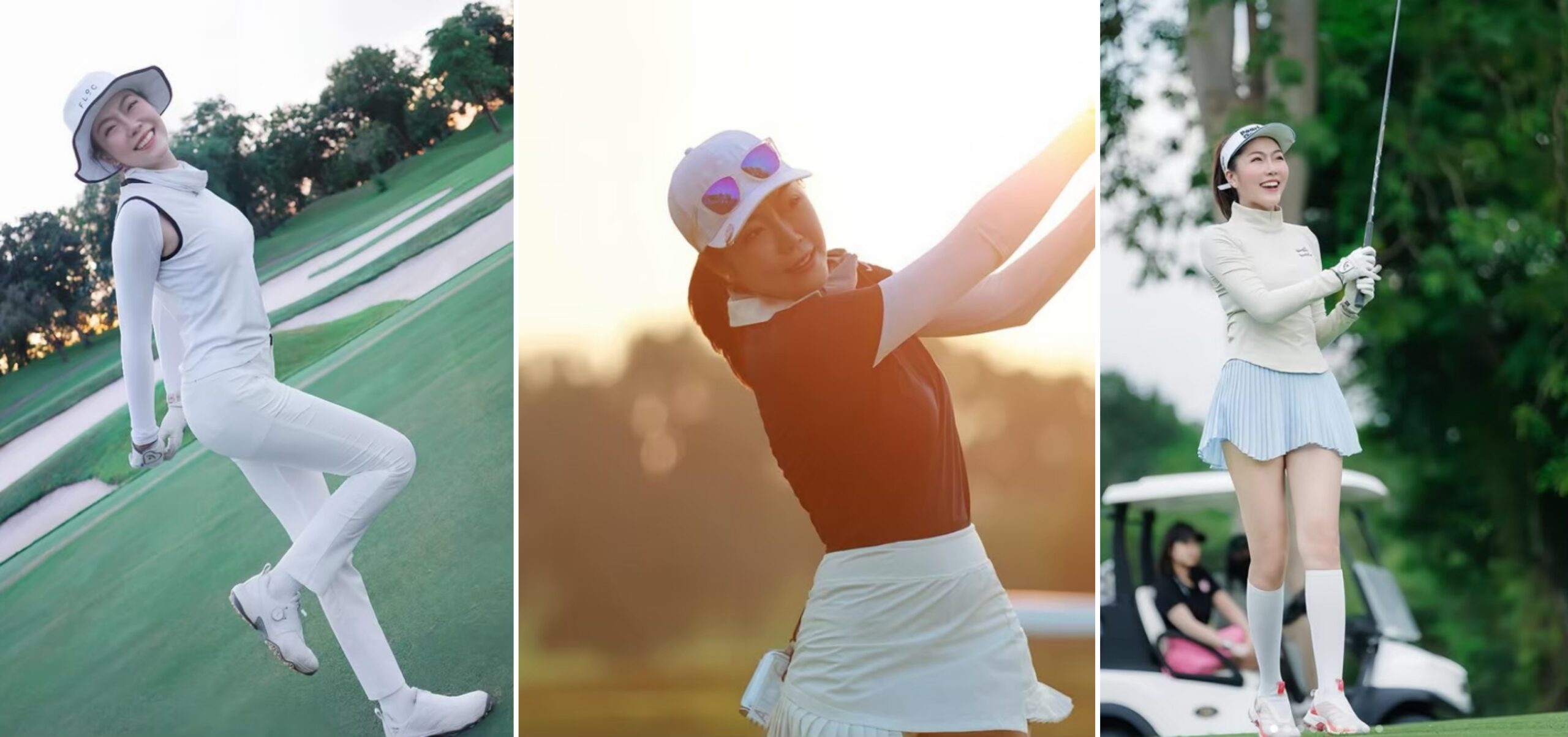 “วิ่งสักพักก็อยากปั่นจักรยาน เลยเป็นช่วงที่วิ่งด้วย ปั่นไปด้วย…เข้าขั้นอยากไปแข่งไตรกีฬาเพราะเราว่ายน้ำได้ แต่พอช่วงโควิด มีงานเยอะมากจนหายไปจากการออกกำลังกาย แต่ที่คอนโดมีคอร์ทเทนนิส เลยจ้างครูมาสอน เล่นอยู่พักหนึ่ง เพื่อนชวนไปไดร์ฟกอล์ฟ ก็ซื้อคอร์สเรียนด้วยนะ แต่เรียนได้ 2 ครั้งก็หยุดเพราะติดทำงาน พอดีแฟนเป็นสายเล่นกีฬาเหมือนกัน กอล์ฟเป็นกีฬาที่ทั้งเขาและเราชอบเหมือนกัน เริ่มติดใจจากครั้งที่เพื่อนชวนไปรีวิวสนามกอล์ฟ เอนจอยและสนุกจนตอนนี้บ้าตีกอล์ฟ”