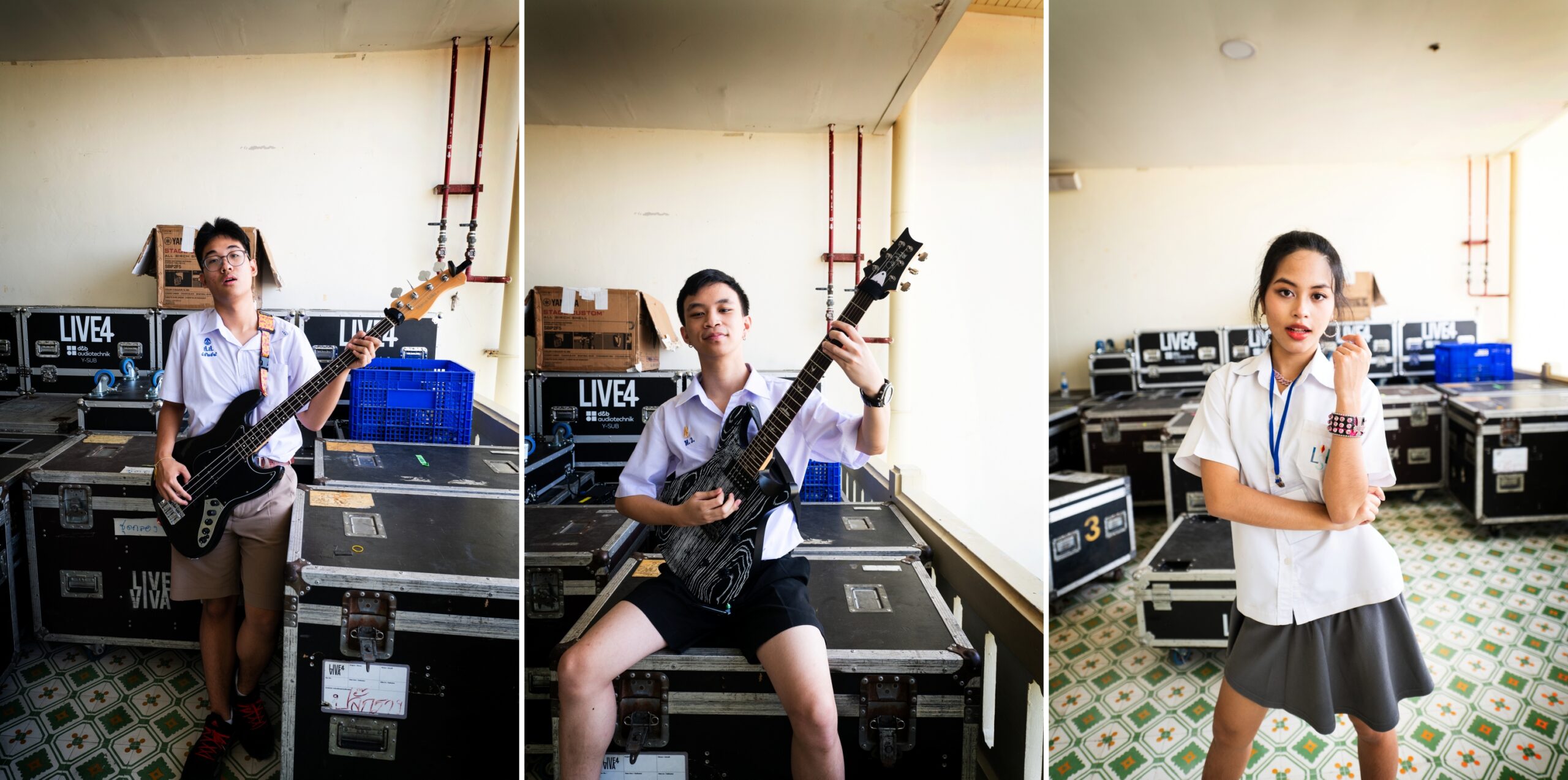 “ก่อนหน้ามาประกวดที่ THE POWER BAND วงเราต้องไปงานที่หัวหินมา ตอนที่ประกวดฉากด้านหลังมันหล่นมาใส่ตัวผม แต่ไม่มีใครเห็นเลย พยายามส่งสัญญาณเรียกพี่ๆ เทคนิคด้านข้างก็ไม่เป็นผล เลยต้องเล่นต่อไปทั้งอย่างนั้น จนเวลาผ่านไปประมาณหนึ่ง พี่เขาถึงเห็นว่าฉากร่วงลงมา แล้วถึงมาช่วยเอาออกไปจากตัวผม มานั่งย้อนคิดๆ ดูตอนนี้ก็รู้สึกว่า เออ…ตอนนั้นก็ยังเล่นต่อไปได้เนอะ” ริว มือกลอง แชร์เรื่องราวสนุกๆ ที่เกิดขึ้นก่อนที่จะมาถึงจุดนี้ให้ฟังแบบขำๆ
