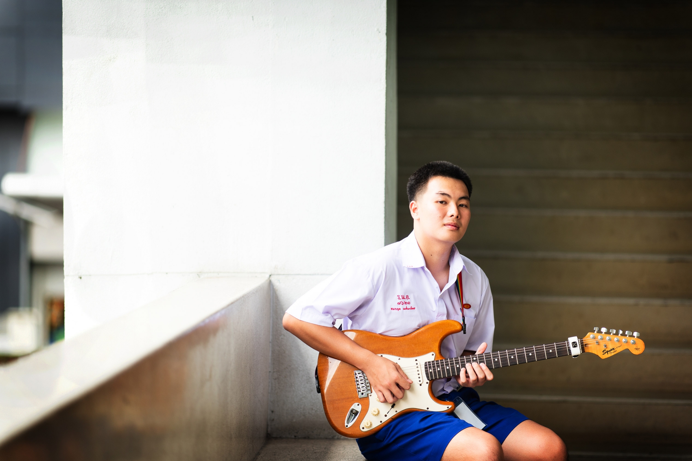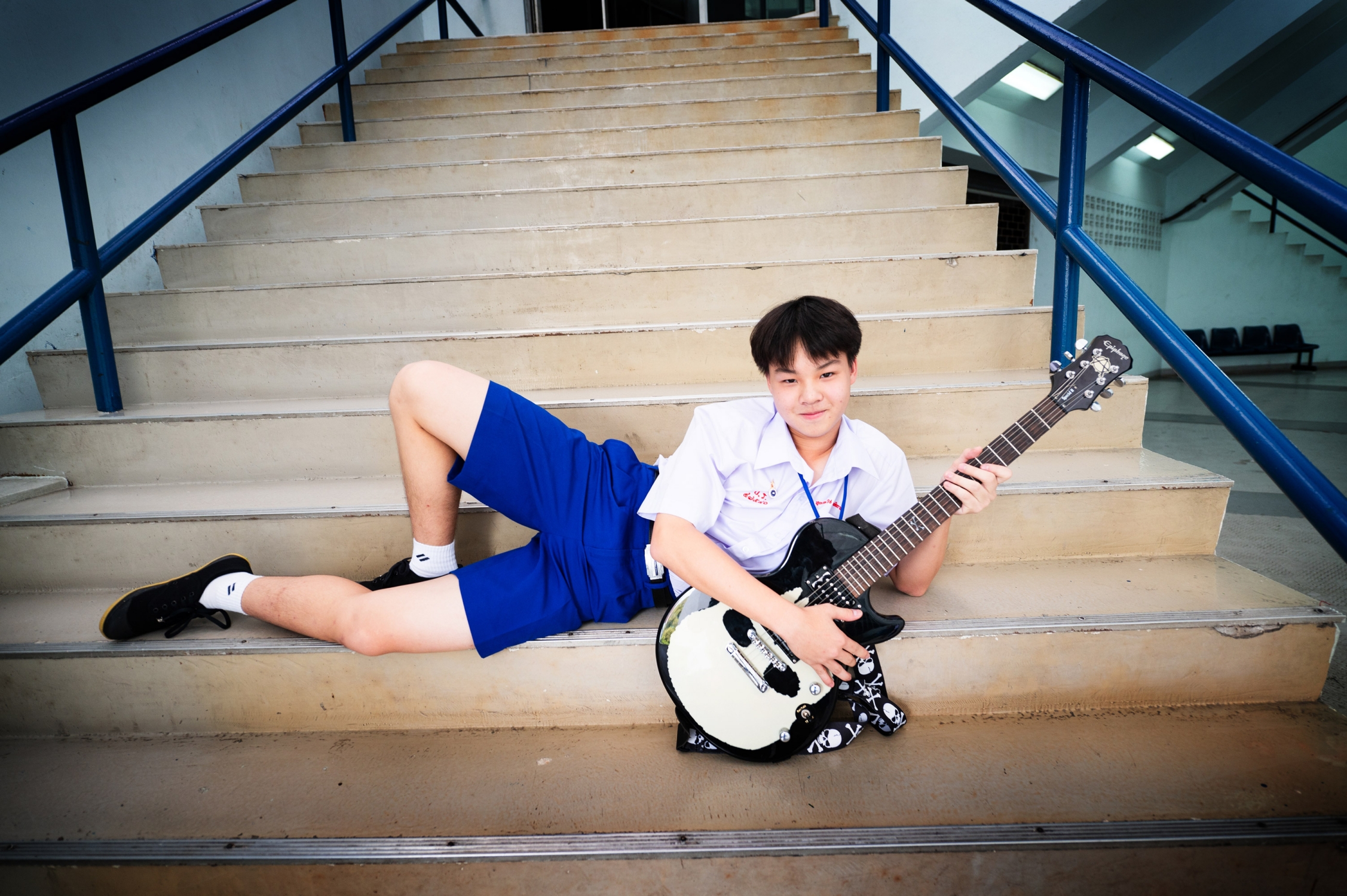 กรรณบอกกับเราว่า ครั้งหนึ่งเขาเคยเข้าประกวดการแข่งขันกีตาร์แล้วล่มกลางทางเพราะตื่นเต้นมากเกินไปจนจำโน้ตที่เล่นไม่ได้ “ช่วงที่โชว์ล่มบนเวทีตอนนั้นก็รู้สึกเซ็งๆ นิดหนึ่ง เลยห่างๆ จากการเล่นกีตาร์ไป กีตาร์ก็วางเหงาๆ อยู่ที่บ้าน ช่วงโควิดไม่มีอะไรทำ ก็เลยลองกลับมาเล่นอีกครั้ง กลายเป็นว่าความรู้สึกเดิมๆ มันกลับมาอีกครั้ง ก็เลยลองฝึกจริงจังอีกครั้ง ผมรู้สึกว่าเวลาตัวเองอยู่กับกีตาร์แล้วมีความสุขมาก ถึงแม้ว่าตอนแข่งจะล่มก็ตามแต่ก็ไม่ได้รู้สึกว่าเป็นแผลใจหรือเฟลอะไรมากนัก ก็ยังรู้สึกสนุกอยู่ดี สนุกอะไรไม่รู้ รู้แต่ว่าเวลาจับกีตาร์แล้วมันยิ้มได้ครับ”