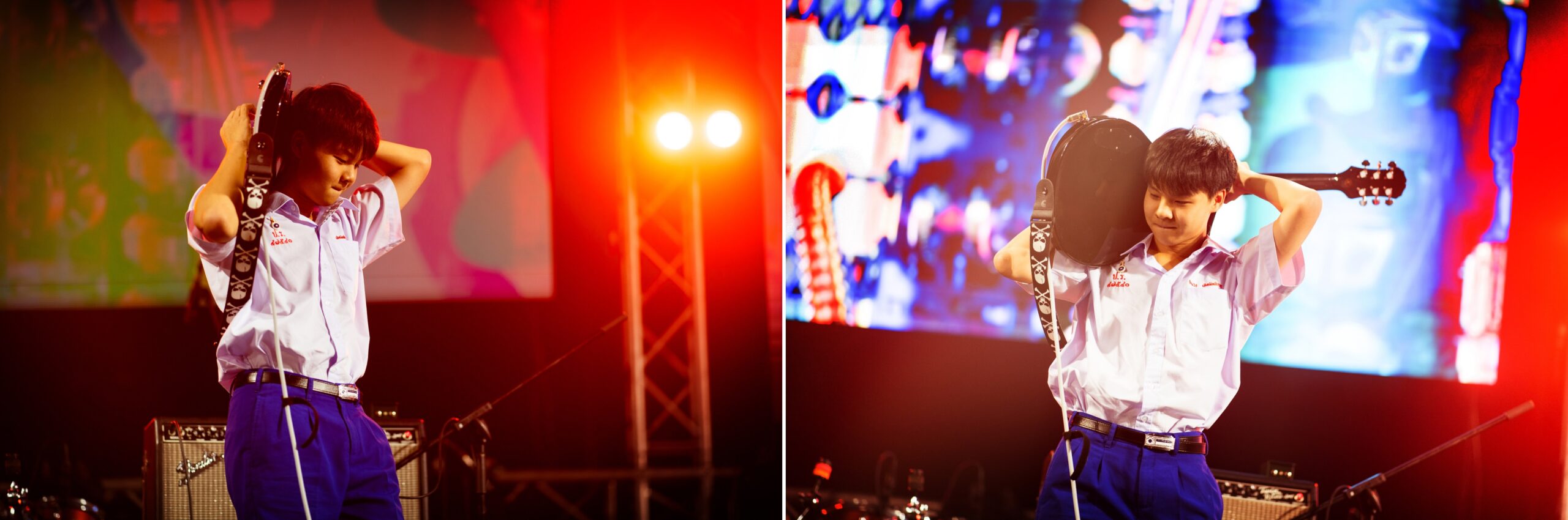 “ปีนี้พวกเราตั้งใจกันมากๆ ซ้อมหนักมาก เลยนำเพลงสนุกๆ มาเรียบเรียงใหม่เป็นแนวร็อก เพื่อนำเสนอความตัวตนของเราลงไป อยากทำให้ทุกอย่างบนเวทีออกมาสมบูรณ์แบบมากที่สุด ก็เลยสนุกกันเต็มที่อย่างที่ทุกคนเห็น ผมนี่โยกไม่หยุดเลย นักร้องนำของวงเราก็เอเนอร์จีล้นเหลือ เห็นได้จากการวิ่งไปวิ่งมาบนเวที (หัวเราะ)”