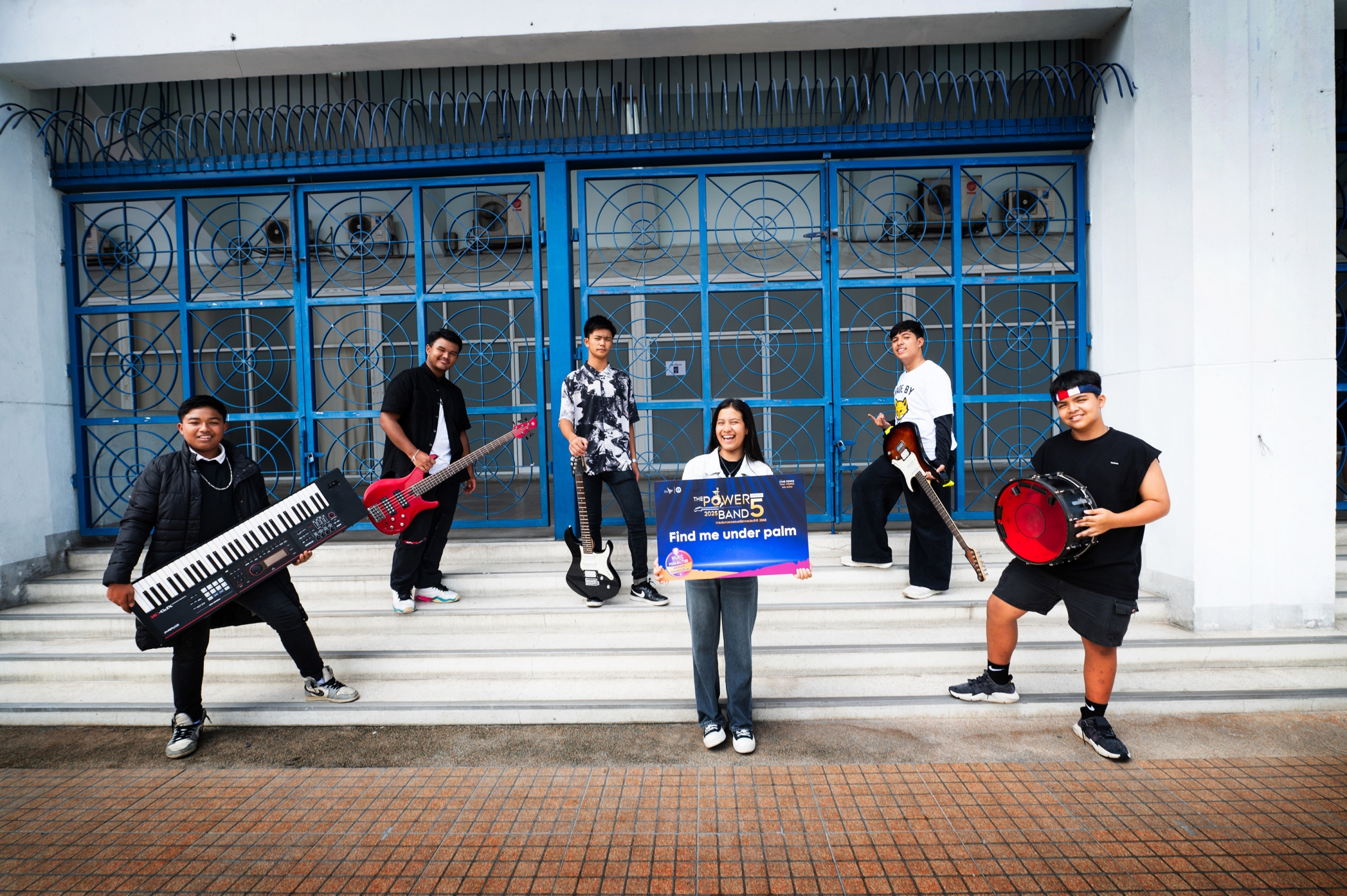 “แล้วเจอกันใต้ต้นปาล์ม” คือ คำพูดติดปากของน้องๆ วง Find me under palm เวลาเรียกทุกคนรวมตัวเพื่อฝึกซ้อมดนตรี ซึ่งมีต้นปาล์มต้นใหญ่แผ่กิ่งก้านสาขาอยู่ต้นเดียวหน้าห้องชมรมดนตรีในโรงเรียน จนกลายมาเป็นชื่อวงที่ใช้ในการประกวดในครั้งนี้ สำหรับฝีมือการเล่นดนตรีอันโดดเด่น คงต้องยกให้น้องออกัส คีย์บอร์ด ที่มีลีลาท่าทางไม่ธรรมดา แถมยังเป็นสีสันให้กับวงและเพื่อนๆ สมาชิกอีกด้วย “พวกผมเคยมาแข่งปีที่แล้วในซีซัน 4 ที่สนามสุราษฎร์ฯ แต่ว่าไม่ผ่านเข้ารอบ ย้อนอ่านบรรยากาศการแข่งในครั้งนั้น คลิกที่นี่