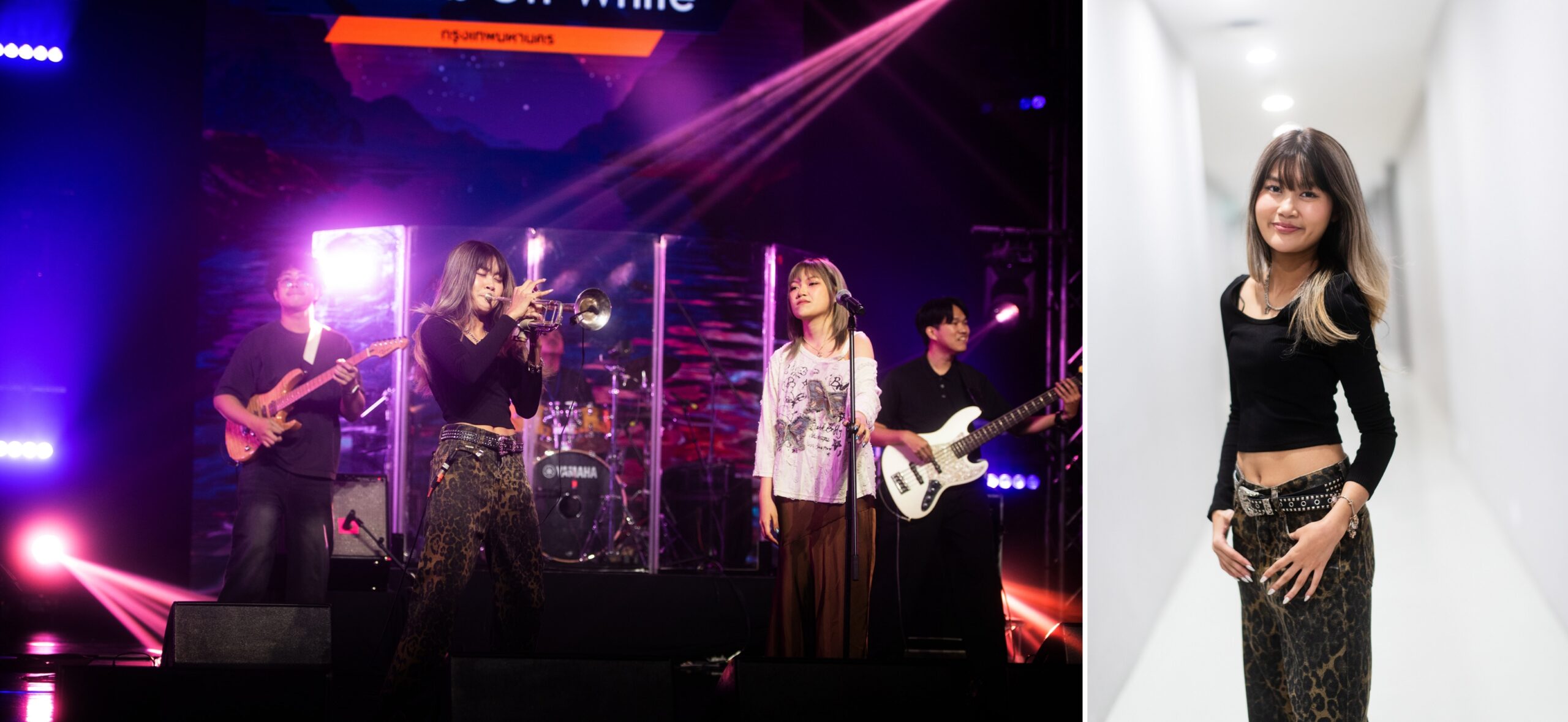 เพลง ทรัมเป็ตสาวจาก Bob Off-White บอก ถึงไม่ได้เตรียมตัวอะไรเยอะ เพราะพวกเขาทั้ง 6 คนสื่อสารกันเป็นหนึ่งเดียวแบบมองตาก็รู้ใจ เธอแบ่งปันมุมมองของวงให้ฟังบ้าง “เราไม่จำเป็นต้องนั่งบอกกันด้วยคำพูด แค่มองตาก็เข้าใจ ทุกคนมีสปิริต มีความรับผิดชอบ และความเป็นนักดนตรีเต็มตัวอยู่แล้ว เพราะงั้นเราไม่อยากแก้ไขคาแรกเตอร์ใครเลยค่ะ ความต่างนี่แหละคือรสชาติของเรา”