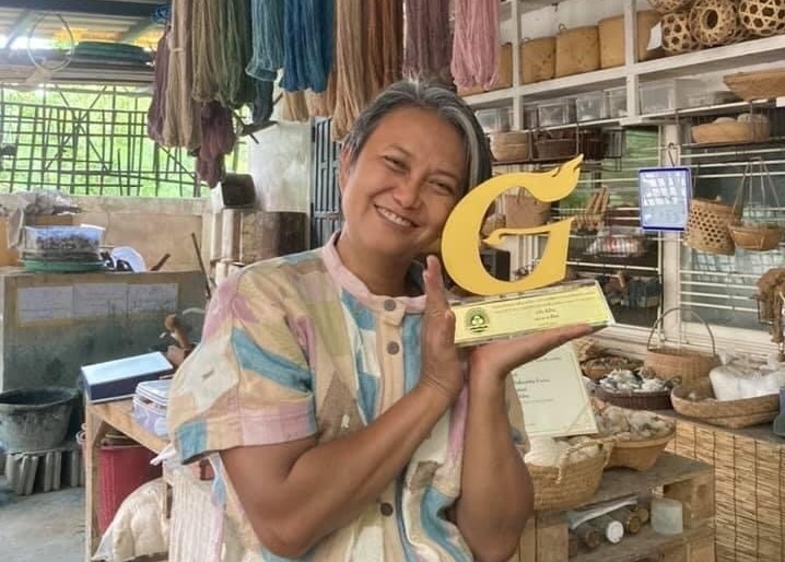 “เห็นยายนั่งทอผ้าอยู่ที่บ้านตลอด และแม่เป็นคนเอาผ้าไปขาย พอแม่ขายดีชาวบ้านคนแก่ๆ ที่ทอผ้าได้ไม่รู้จะขายทางไหน แม่ก็ลุยช่วยคนเฒ่าคนแก่ให้มีรายได้สืบเนื่องมาเรื่อยๆ จนได้ OTOP และไปขายตามงานแสดงสินค้าที่ต่างๆ ในจังหวัด ส่งที่ห้างเจเจมอลล์ และออกที่งานเมืองทองธานี แต่เราเพิ่งเข้ามาดูแลจริงจังแทนแม่มากขึ้น เพราะแม่เริ่มไม่สบายต้องผ่าตัดเนื้องอกในมดลูก ก็เลยอยากรับหน้าที่สืบสานวัฒนธรรมเหล่านี้แทน เพราะไม่อยากให้แม่ต้องทำงานหนัก และต้องการดูแลเรื่องค่าใช้จ่ายรักษาและฟื้นฟูร่างกายแทนแม่เอง”
