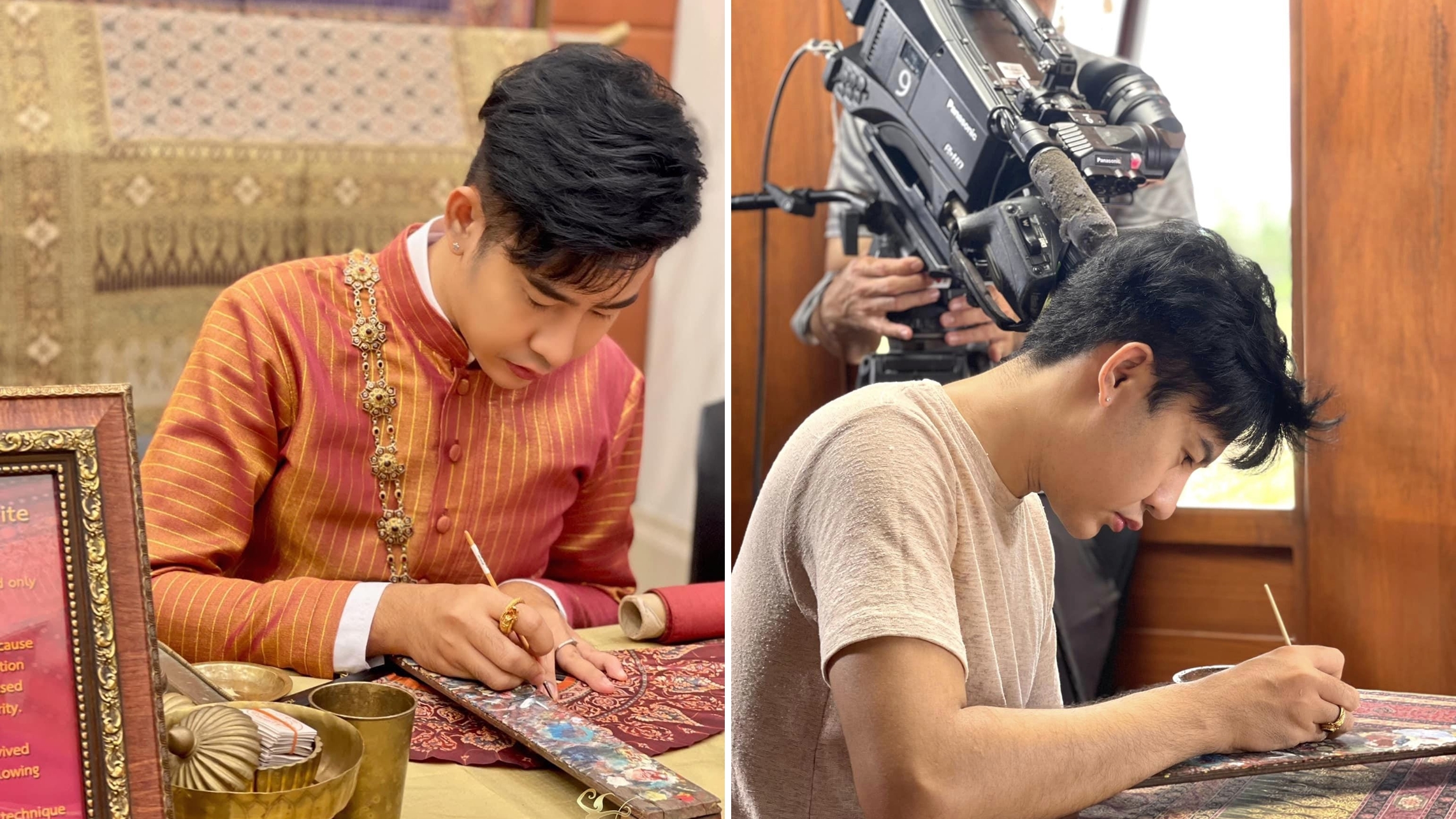 “พอขึ้นปี 4 ต้องทำโปรเจกต์จบ ก็ไปได้แรงบันดาลใจจากจิตรกรรมฝาผนังรูปเทพพนมในวัดใหญ่สุวรรณาราม จ.เพชรบุรี เริ่มสังเกตว่าเทวดานางฟ้าในภาพนุ่งห่มผ้าลายที่ไม่เคยเห็นมาก่อน แล้วทำไมจิตรกรสมัยอยุธยาถึงวาดลวดลายแบบนี้ หาข้อมูลจนเจอคำว่า ‘ผ้าลายอย่าง’ แต่ยังไม่มีข้อมูลแน่ชัด เลยตัดสินใจเข้ากรุงเทพฯ ไปพิพิธภัณฑสถานแห่งชาติ พระนคร เพื่อดูว่าผ้าลายอย่างของจริงเป็นยังไง ปรากฏว่าเหมือนกับจิตรกรรมฝาผนังที่เห็น ก็ยิ่งสนใจและศึกษาจนเข้าใจว่า ผ้าลายอย่าง คือลายผ้าที่เขียนขึ้นโดยจิตรกรไทย มีทั้งหมด 13 กระบวนลาย จากนั้นราชสำนักจะส่งลายผ้าไปอินเดียให้ผลิตตามแบบ เสร็จก็ส่งกลับมาที่ไทยและใช้เป็นผ้าในราชสำนักเรื่อยมาจนถึงรัชกาลที่ 5”