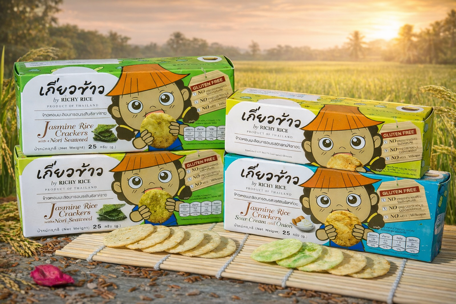 ผลลัพธ์คือการพัฒนาเป็น “ขนมไรซ์แครกเกอร์” ที่ตอบโจทย์ผู้บริโภคยุคใหม่ และสามารถต่อยอดสูตร รสชาติ และรูปแบบสินค้าให้สอดคล้องกับความชอบและความต้องการของผู้บริโภคในแต่ละประเทศ วางจำหน่ายภายใต้แบรนด์ “เกี่ยวข้าว by RICHY RICE”