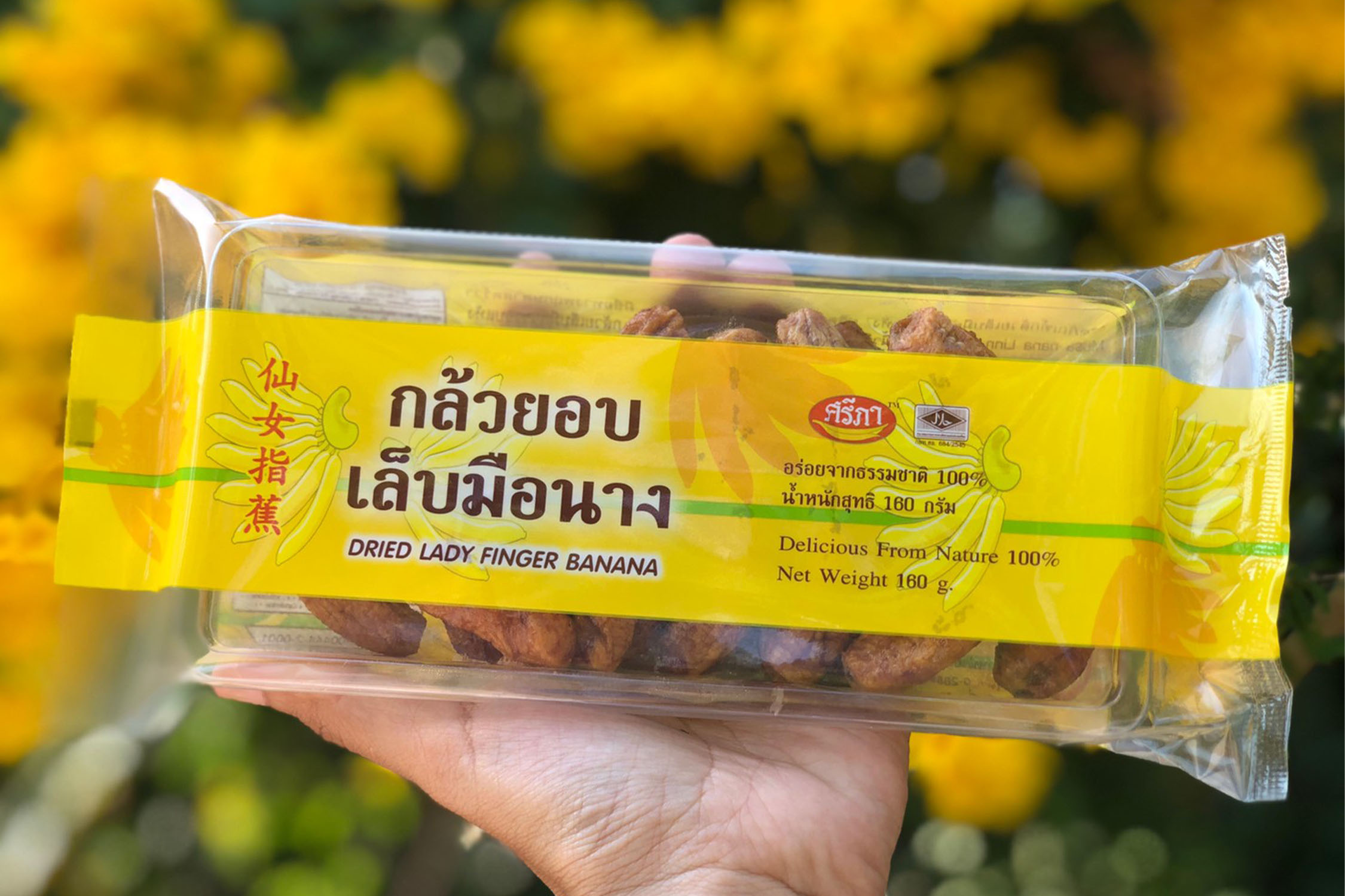 กล้วยอบเล็บมือนาง ศรีภา โดดเด่นด้วยรสชาติหวานละมุนและกลิ่นหอมเป็นเอกลักษณ์ จาก “กล้วยเล็บมือนางสด” ที่ได้รับการรับรอง GI ของจังหวัดชุมพร วัตถุดิบทุกชิ้นคัดสรรจากสายพันธุ์คุณภาพ ที่ผ่านการทดลองและวิจัยโดยสถาบันเทคโนโลยีพระจอมเกล้าเจ้าคุณทหารลาดกระบัง วิทยาเขตชุมพร