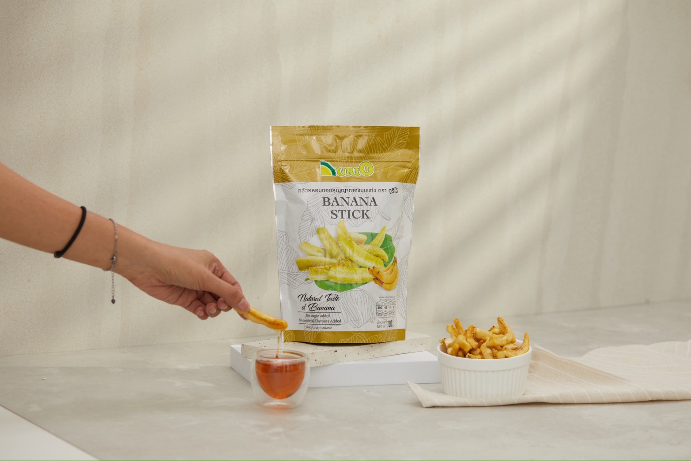 Durio คือหนึ่งในแบรนด์คนไทยที่มองเห็นความสำคัญของการต่อยอดผลไม้ไทยด้วยเทคโนโลยีสุญญากาศ โดยที่ยังคงไว้ซึ่งรูป กลิ่น รส และคุณค่าทางโภชนาการของวัตถุดิบนั้นๆ เปลี่ยนผลไม้ไทยเป็นขนมขบเคี้ยวแสนอร่อยที่สามารถกินได้เรื่อยๆ จนหมดห่อ เหมาะกับทุกโอกาส และยังสามารถซื้อเป็นของฝากจากประเทศไทยได้ด้วย