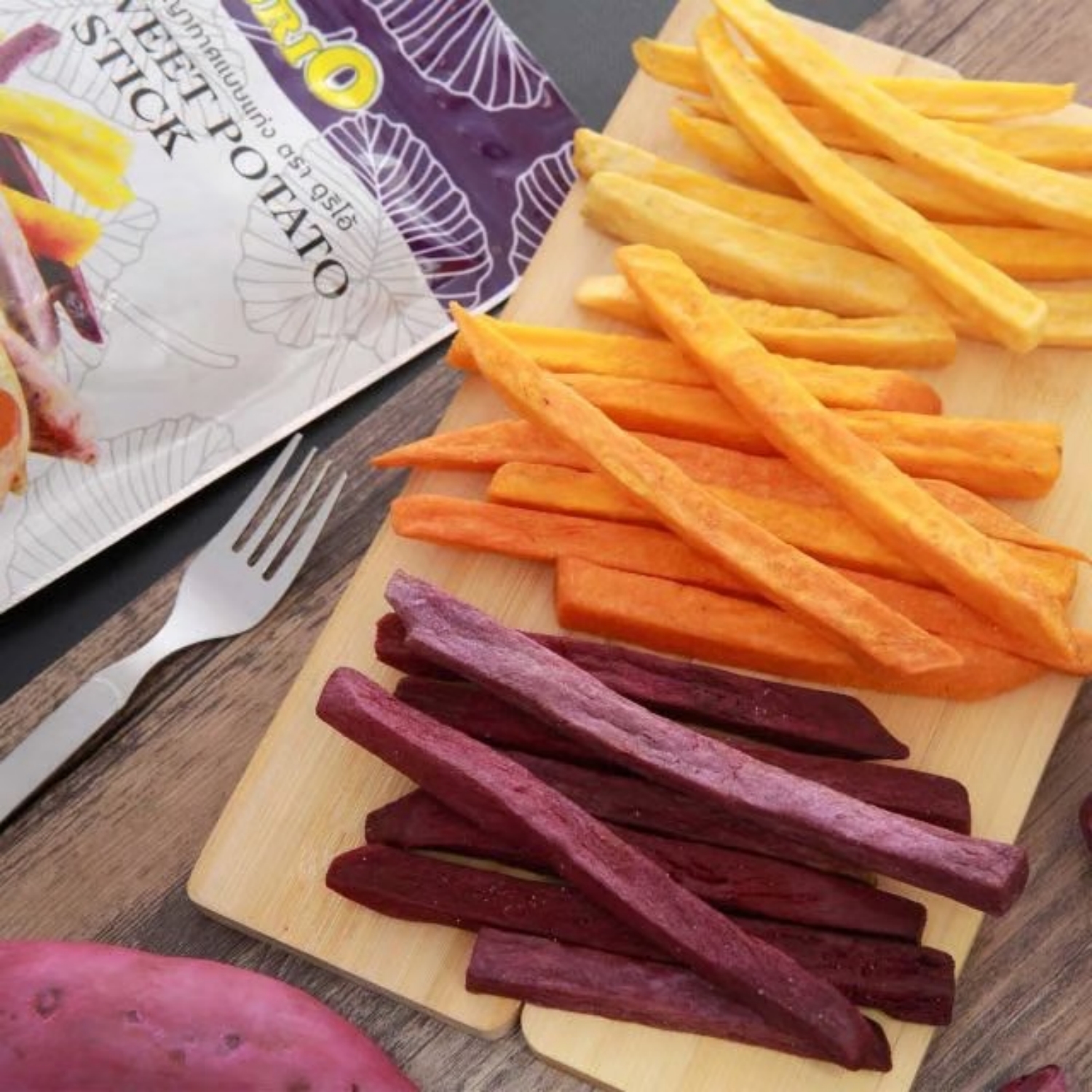 สินค้ามันทอดสุญญากาศ มีความพิเศษที่ทางแบรนด์เลือกใช้มันเทศถึง 4 พันธุ์ ได้แก่ มันม่วง มันแคร์รอต มันต่อเผือก และมันไข่จากพื้นที่ต่างๆ ในประเทศไทย นำมาตัดเป็นเส้นขนาดพอดีคำแล้วนำไปทอดสุญญากาศ ได้เป็นเนื้อมันทอดกรอบๆ บรรจุถุงเป็นผลิตภัณฑ์มันทอดสี่สายพันธุ์อัดแน่นในห่อเดียว เอาใจคนชอบกินมันเทศ มันหวาน