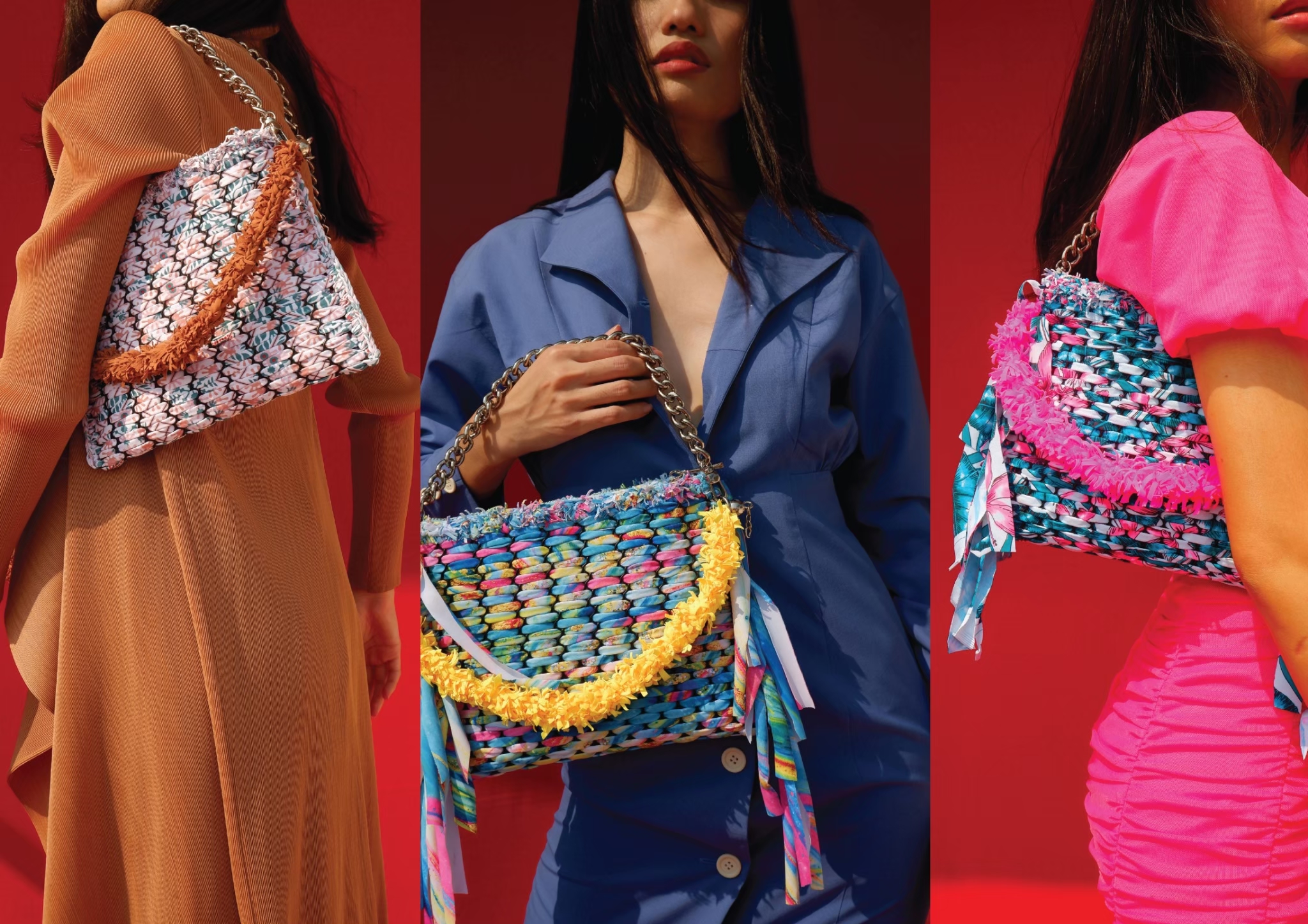 จากงานหัตถกรรมจักรสานของไทยที่ใช้ไม้ไผ่ฝานบางๆ ตัดเป็นเส้นเล็กๆ มาวันนี้เวลาเปลี่ยน ยุคสมัยเปลี่ยน ถูกนำมาเป็นแรงบันดาลใจจนเกิดเป็นเทคนิคทำกระเป๋าของคนรุ่นใหม่ที่ใส่ความโมเดิร์น สีสันจัดจ้านเข้าไป และที่สำคัญคือเป็นงาน Upcycling รับผิดชอบต่อสิ่งแวดล้อมแบบเก๋ๆ ที่รักษ์โลกแบบไม่ต้องตะโกน