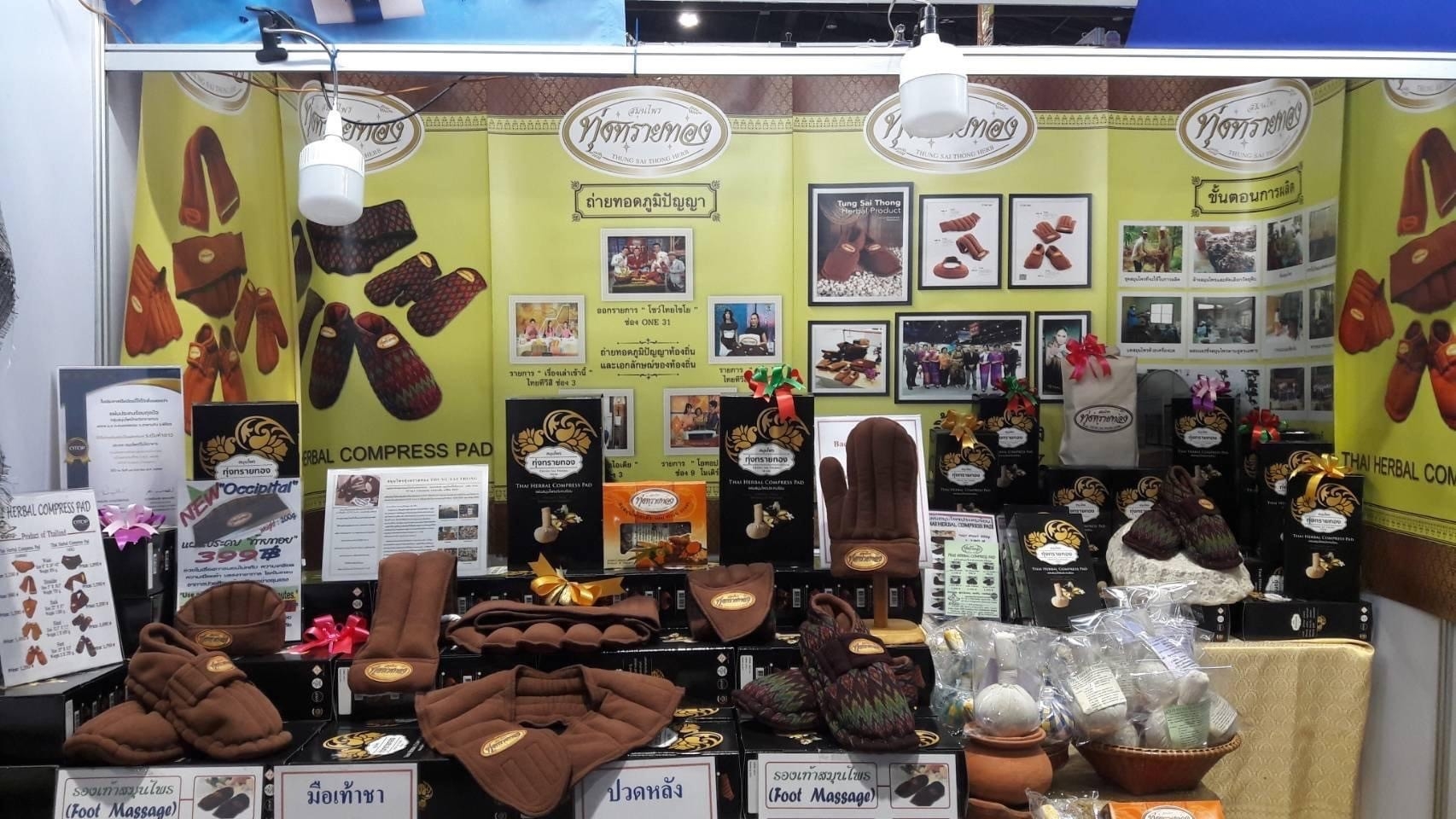 ทางสมุนไพรทุ่งทรายทองนอกจากจะเผยแพร่ให้คนได้รู้จักสมุนไพรที่มีสรรพคุณดีๆ แล้ว ยังส่งเสริมงานหัตถกรรมฝีมือของชาวบ้านในท้องถิ่นด้วย “ตอนนี้เรามีผลิตภัณฑ์ 2 รูปแบบ คือแบบที่ 1 เป็นสีน้ำตาลที่ใช้ผ้าคอตตอนมาตัดเย็บ ส่วนแบบที่ 2 เป็นแบบลายผ้าไทย ซึ่งผ้านี้ก็เป็นผ้าทอมือท้องถิ่นที่มีลวดลายเป็นอัตลักษณ์ของจังหวัดพิจิตร เราเรียกว่า ลายผ้าป่าแดง เป็นการสนับสนุนแรงงานชาวบ้านด้วย ชาวบ้านจะทอผ้าส่งมา เราก็นำมาเย็บเป็นผลิตภัณฑ์เพื่อเพิ่มมูลค่า”