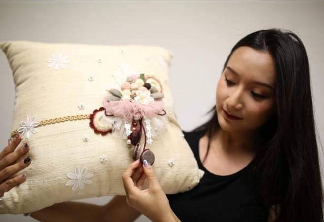 เพราะเริ่มต้นจากทุนน้อยและเจอสินค้าจีนเข้ามาตีราคาสินค้าเครื่องประดับอย่างกิ๊บติดผม จึงพยายามหากสิ่งที่เป็นเอกลักษณ์ให้กับตัวเอง โดยเน้นเอาวัสดุที่เหลือใช้มาแปลงเป็นผลงานศิลปะทำมือ อย่าง กระดุมก็นำมาทำเกสรดอกไม้ เศษผ้าขนาด 1 เซนติเมตรที่ใครหลายคนต้องทิ้งแต่สำหรับเราเอามาแปลงเป็นส่วนประกอบชิ้นงานได้หมด รวมถึงการนำดอกไม้และสิ่งที่เป็นธรรมมชาติมาประยุกต์เป็นชิ้นงาน จนกลายเป็นช่อพฤกษาที่กลายเป็นอัตลักษณ์ของแบรนด์ของเราไป ซึ่งจะถูกนำไปติดอยู่ที่เสื้อ หมวก กระเป๋า พวงกุญแจ หรือสินค้าของเรา โดยมีลายดอกไม้อื่นๆ เพิ่ม เช่น ดอกแก้ว ดอกทิวลิป กล้วยไม้